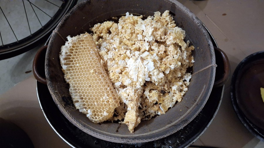In het voorjaar en herfst is het tijd om oude raten om te smelten tot wasblokken. In het voorjaar komen de onder geplaatse bakken met soms oude raten beschikbaar en in de nazomer haal ik de minder fraaie honingraten uit de roulatie en vervang deze voor kunstraat.