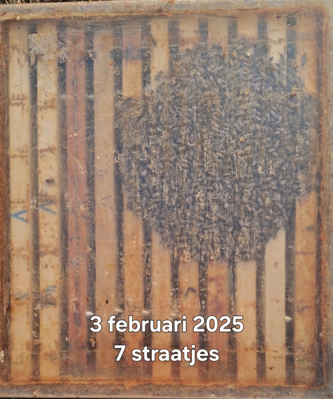 • check na 5 tot 7 dagen hoeveel mijten er gevallen zijn op de schuifla en noteer deze gegevens en probeer eens na te gaan waarom het ene volk veel mijten laat vallen en een ander weinig.